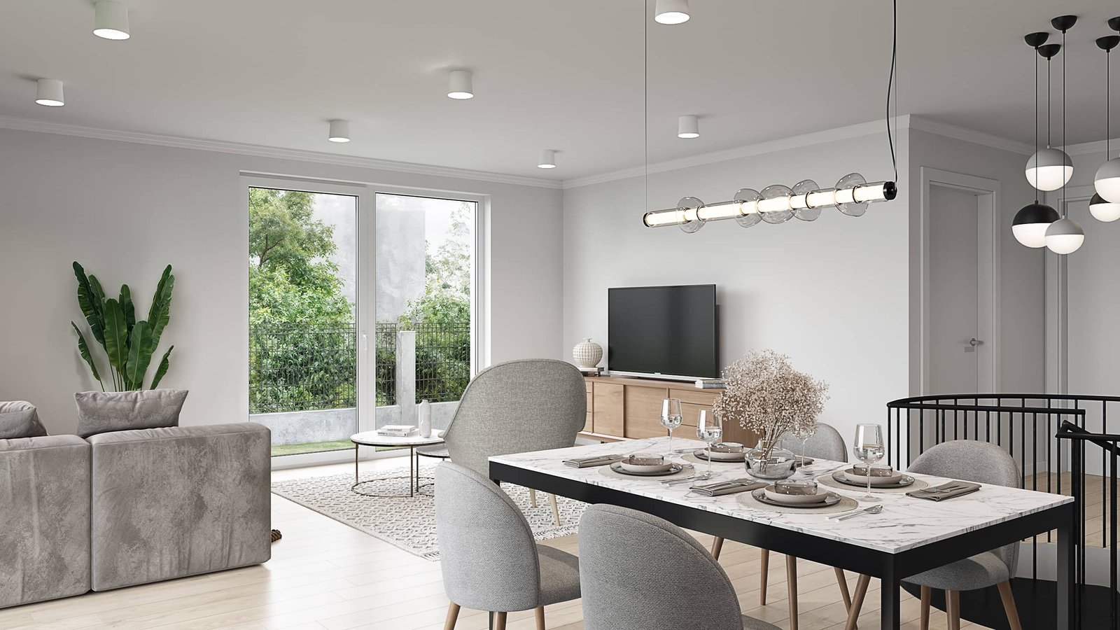 Offene Grundrisse und bodentiefe Fenster sorgen für Licht und Weite. Hochwertige Materialien und Details verleihen jedem Raum eine besondere Note.